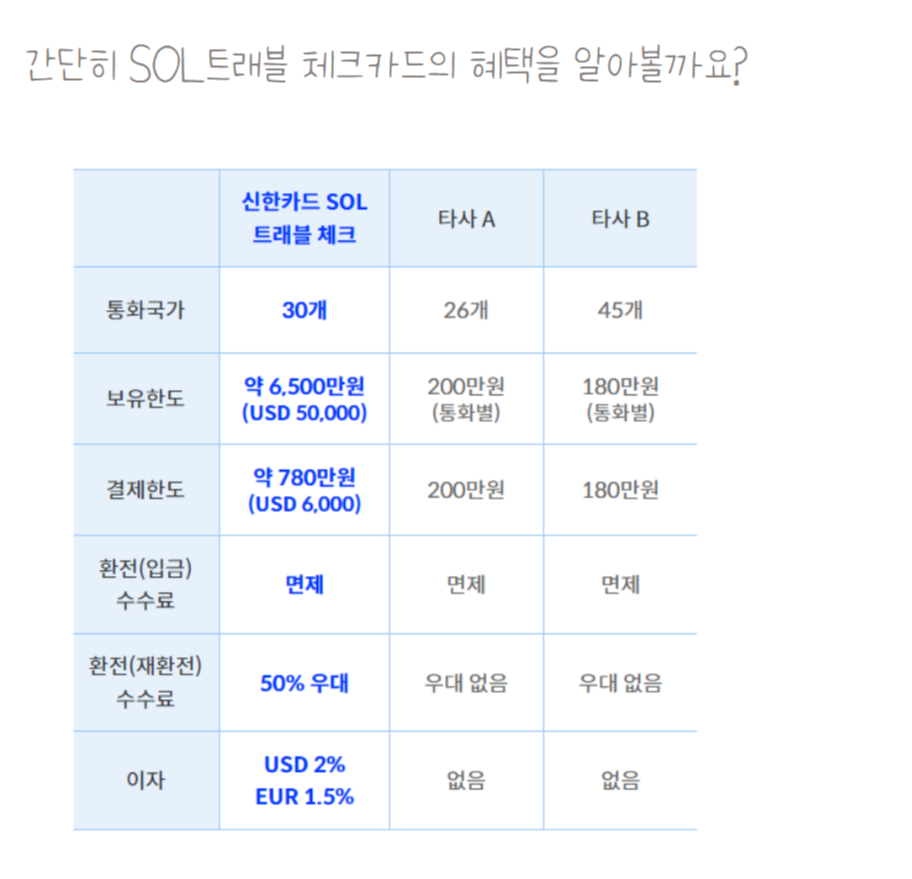 신한 SOL트래블 체크카드는 단순한 체크카드를 넘어, 여러분의 해외여행 경험을 한층 더 풍요롭게 만들어줄 동반자가 될 것입니다. 연회비 무료라는 매력적인 조건과 함께, 전 세계 공항 라운지 이용 혜택, 수수료 면제, 환율 우대 등 다양한 혜택을 누릴 수 있습니다. 지금 바로 신한 SOL트래블 체크카드를 발급받고, 더욱 편안하고 즐거운 여행을 시작해 보세요!