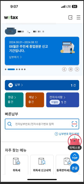 위택스(Wetax) | 로그인 후 지방세 납부 → 주민세 선택 → 카드 결제 | 국가에서 운영하는 공식 사이트 |